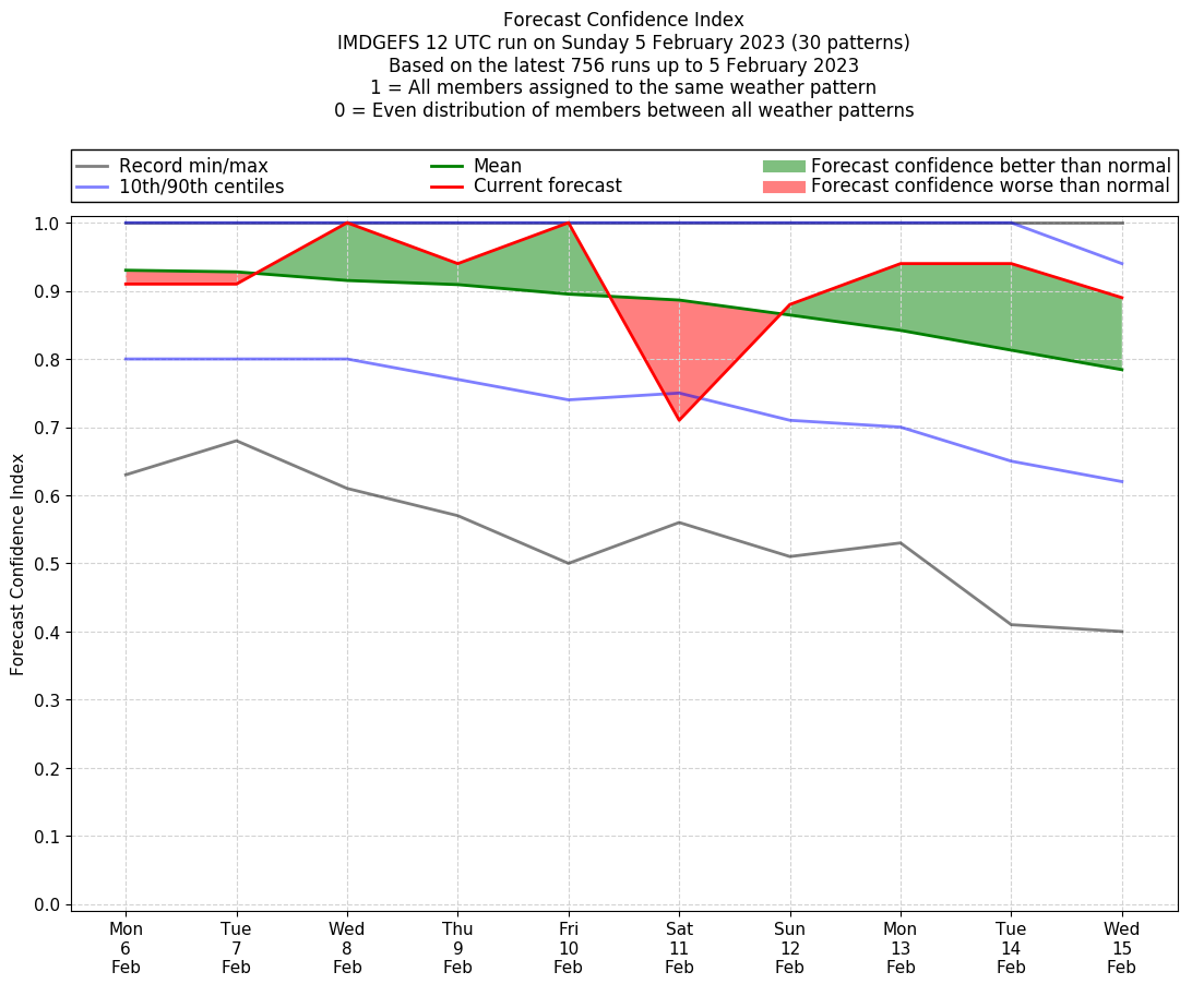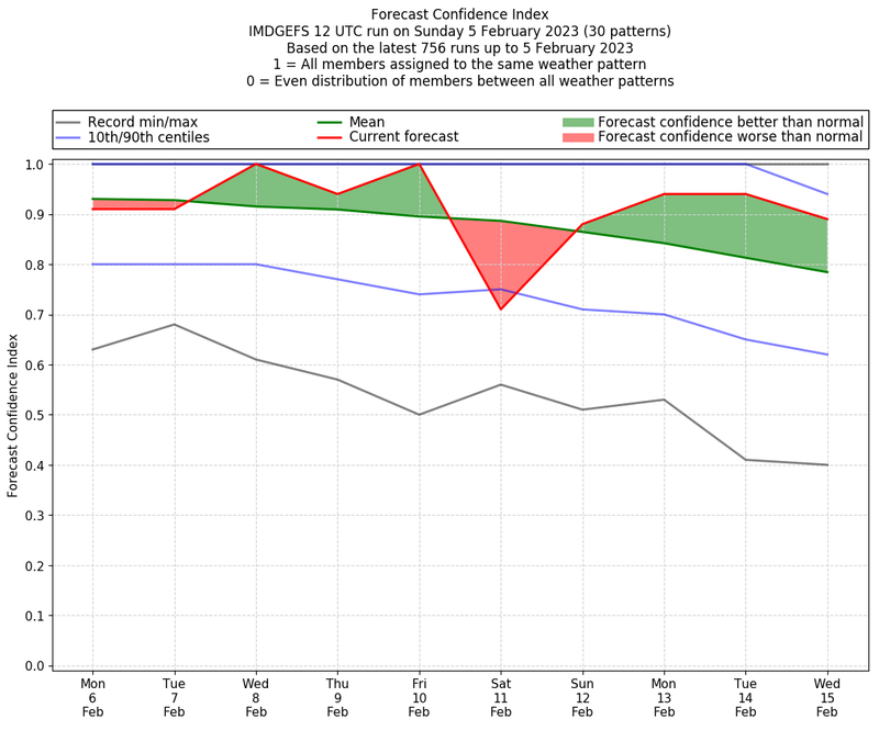 | Weather patterns typically associated with contrywide dry period tendencies over India are most likely Weather patterns 2, 3, 7, 8, 9, 16 and 20 (countrywide winter dry period) | |