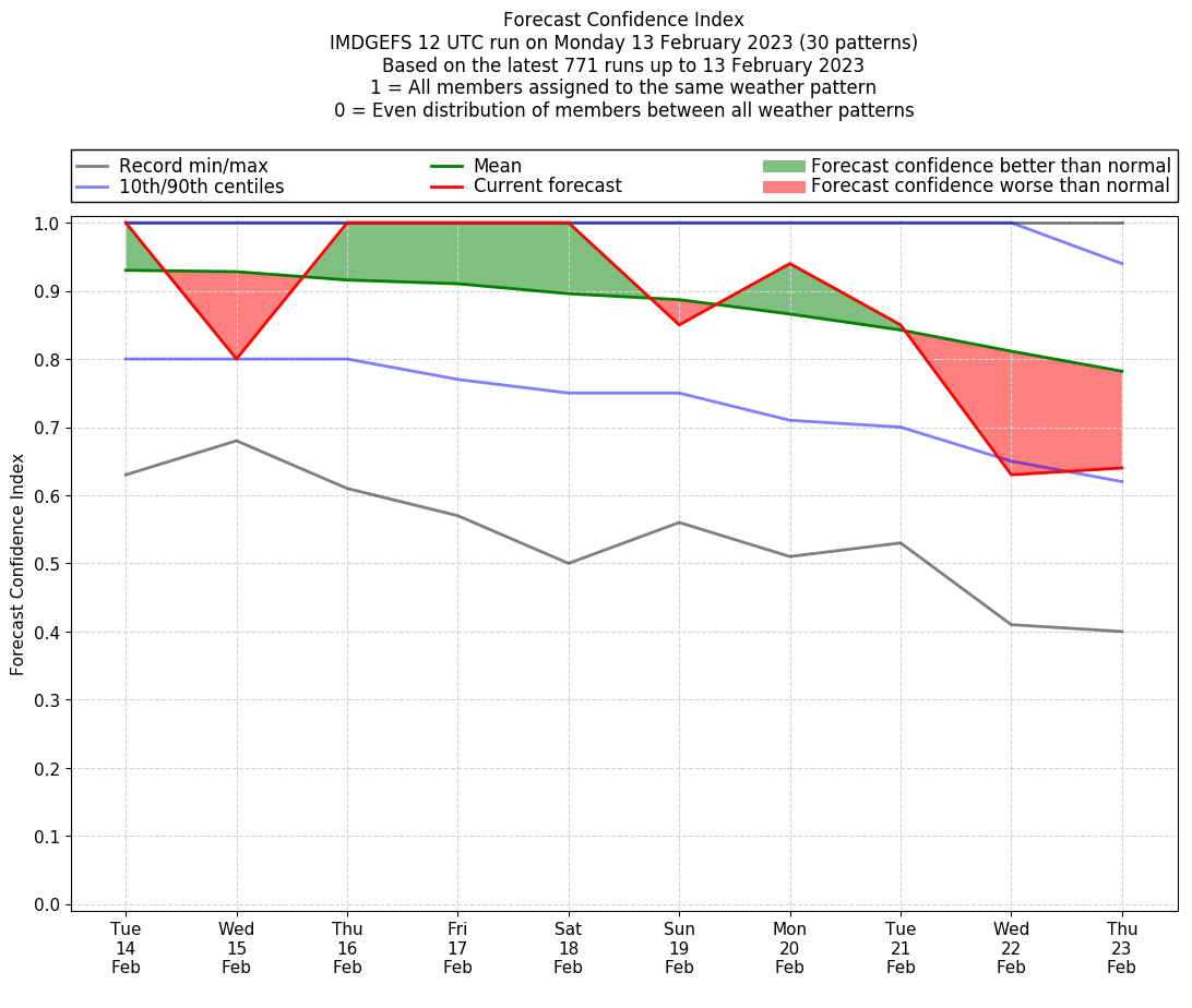 | Latest model run (13/12 UTC) | 100% | 100% | 100% | 100% | 100% | 100% | 100% | 100% | 95% | 100% |