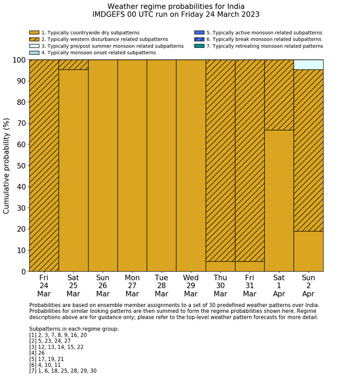 | Weather patterns typically associated with western disturbance tendencies over India are most likely Weather patterns 5, 23, 24 and 27 (western disturbances) |