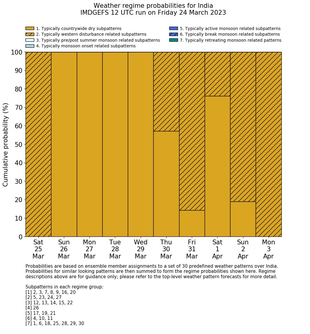 | Weather patterns typically associated with western disturbance tendencies over India are most likely Weather patterns 5, 23, 24 and 27 (western disturbances) |