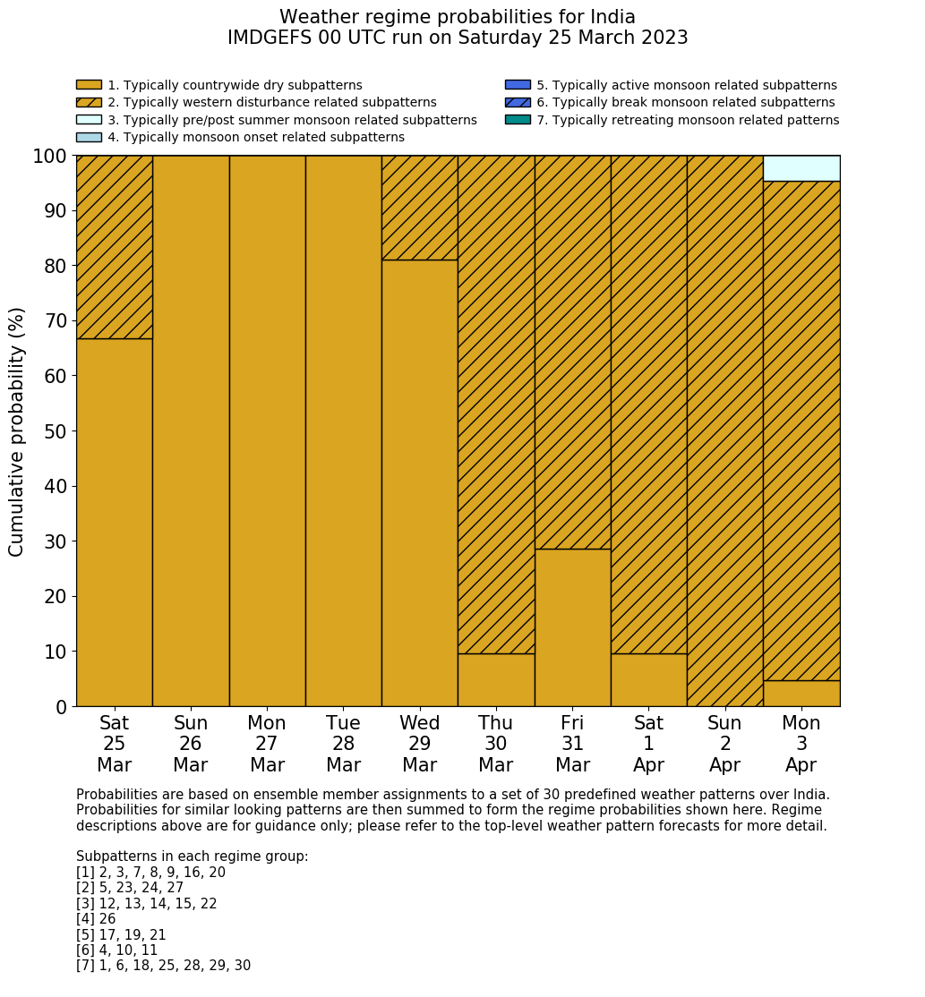| Weather patterns typically associated with western disturbance tendencies over India are most likely Weather patterns 5, 23, 24 and 27 (western disturbances) |