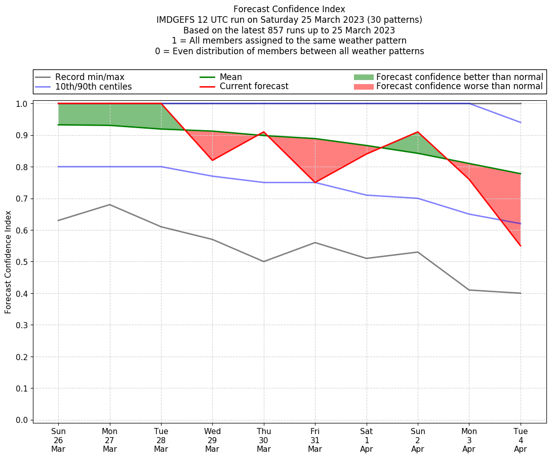 | Latest model run (25/12 UTC) | 100% | 100% | 100% | 100% | 90% | 81% | 76% | 100% | 100% | 67% |