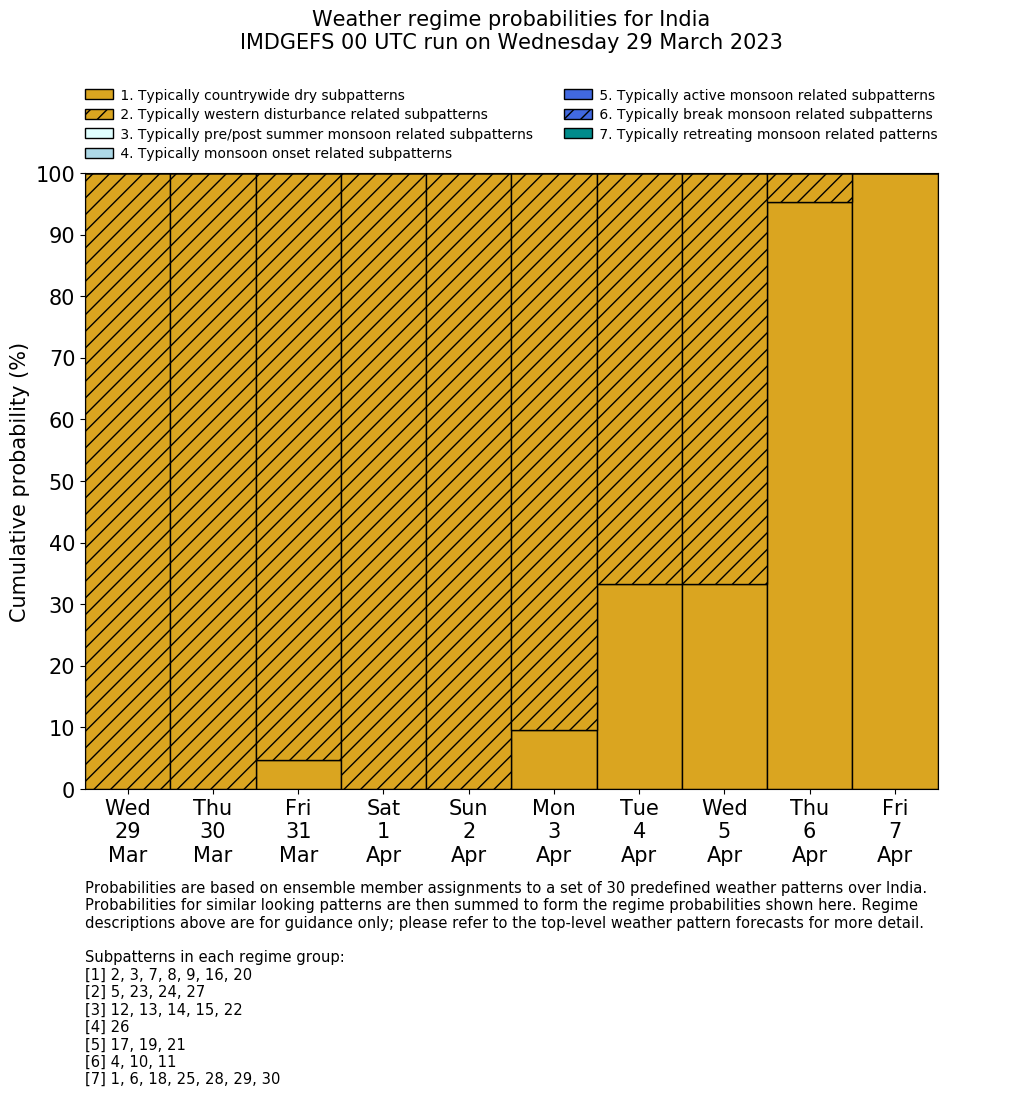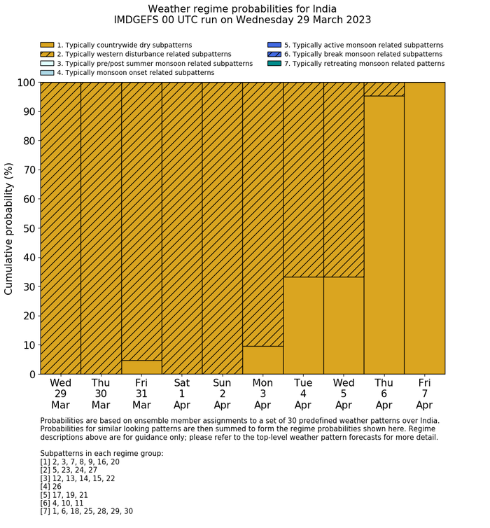 | Weather patterns typically associated with western disturbance tendencies over India are most likely Weather patterns 5, 23, 24 and 27 (western disturbances) |