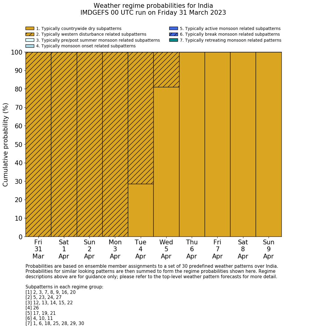 | Weather patterns typically associated with western disturbance tendencies over India are most likely Weather patterns 5, 23, 24 and 27 (western disturbances) |