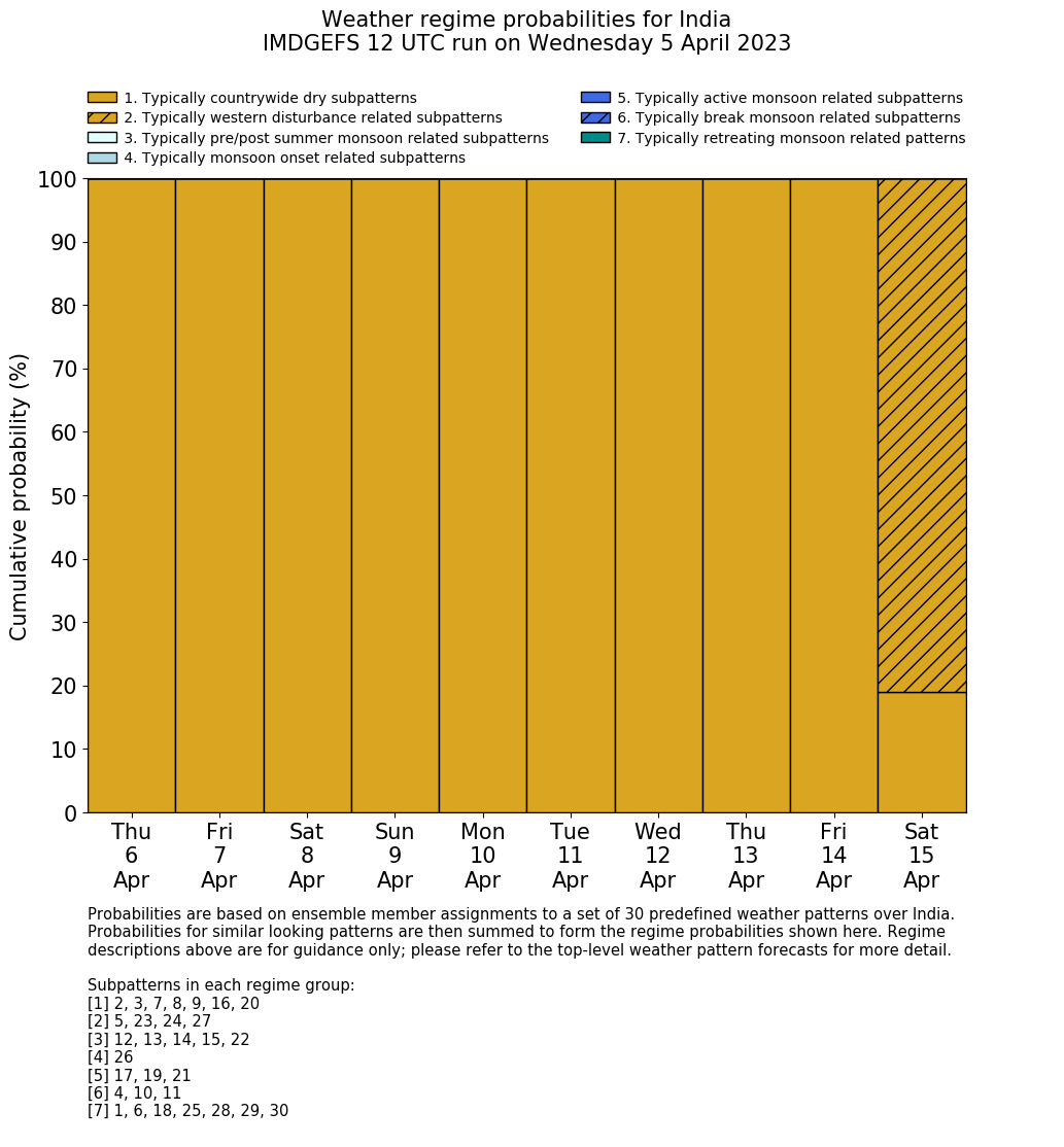 | Weather patterns typically associated with western disturbance tendencies over India are most likely Weather patterns 5, 23, 24 and 27 (western disturbances) |