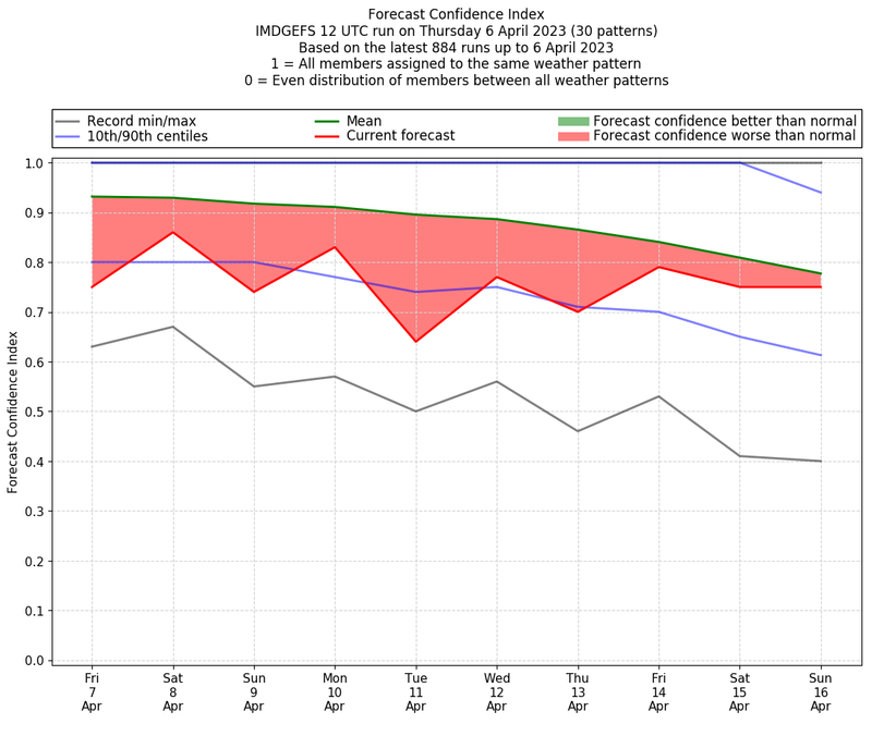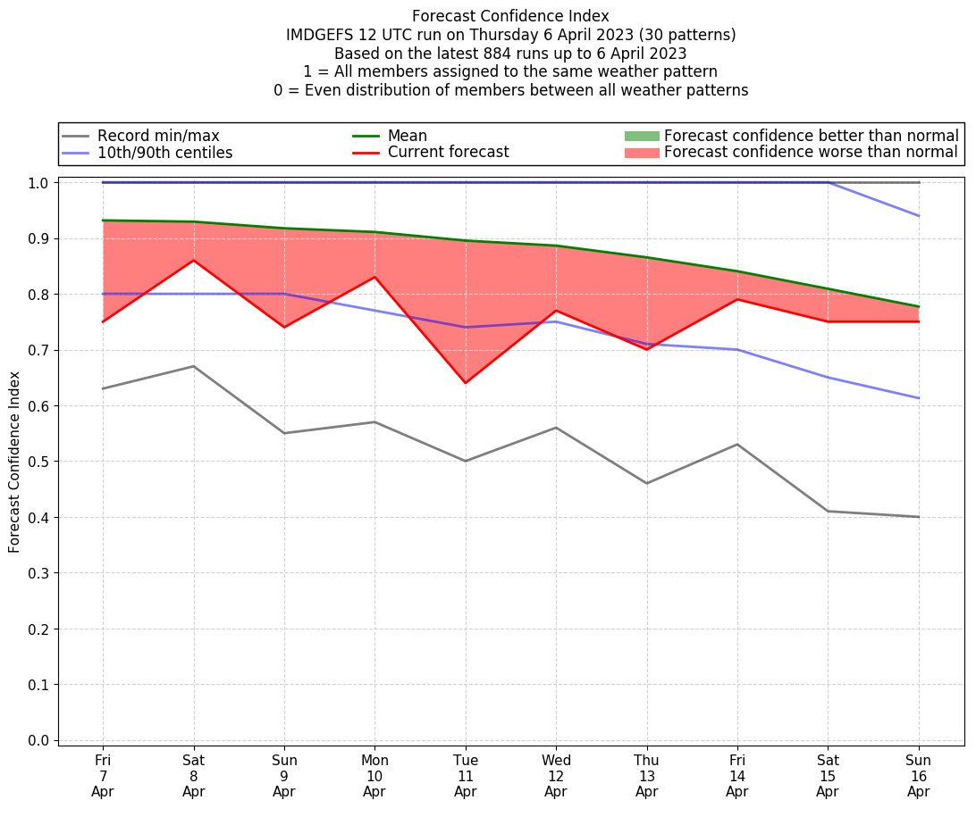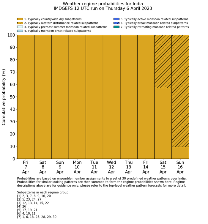| Weather patterns typically associated with contrywide dry period tendencies over India are most likely Weather patterns 2, 3, 7, 8, 9, 16 and 20 (countrywide winter dry period) | |
