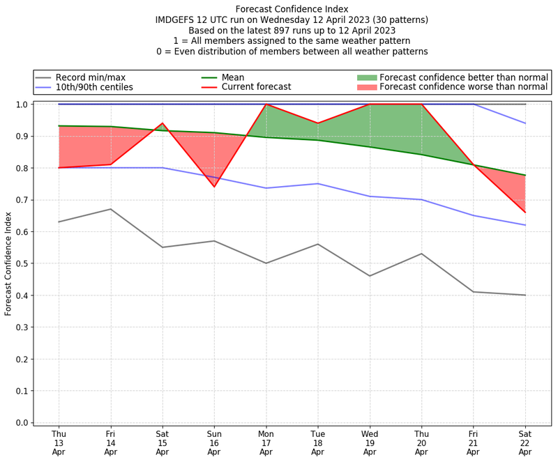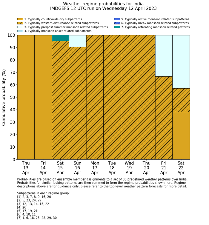 | Weather patterns typically associated with pre-monsoon tendencies over India are most likely Weather patterns 12, 13, 14, 15 and 22 (pre-monsoon) | |