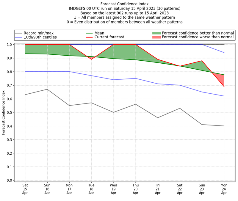 | Weather patterns typically associated with pre-monsoon tendencies over India are most likely Weather patterns 12, 13, 14, 15 and 22 (pre-monsoon) | |