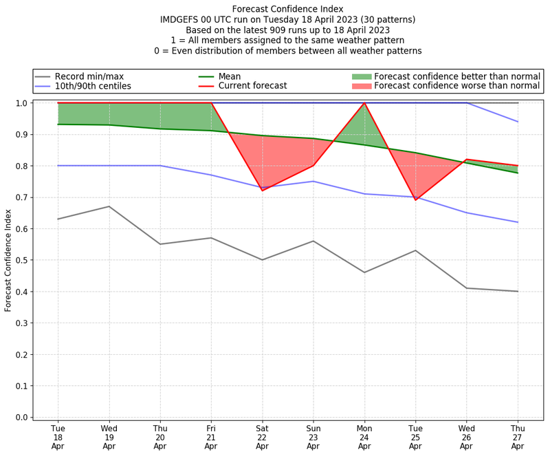 | Weather patterns typically associated with pre-monsoon tendencies over India are most likely Weather patterns 12, 13, 14, 15 and 22 (pre-monsoon) | |
