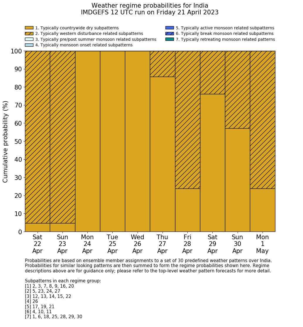 | Weather patterns typically associated with western disturbance tendencies over India are most likely Weather patterns 5, 23, 24 and 27 (western disturbances) |