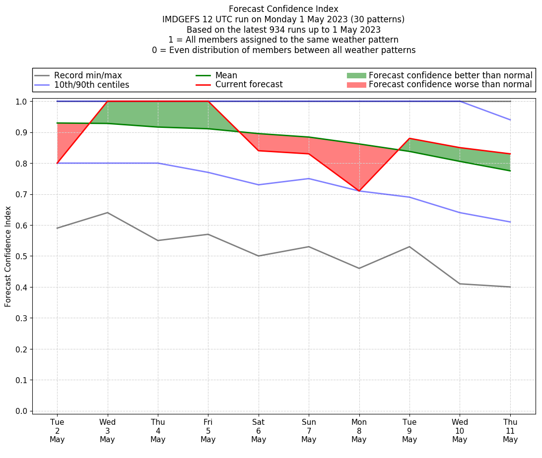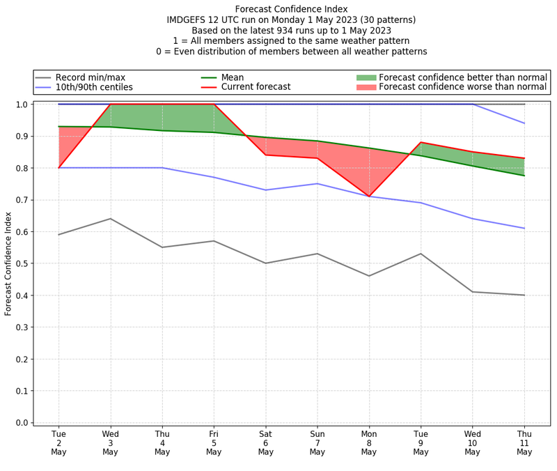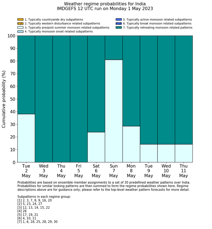 | Weather patterns typically associated with pre-monsoon tendencies over India are most likely Weather patterns 12, 13, 14, 15 and 22 (pre-monsoon) | |