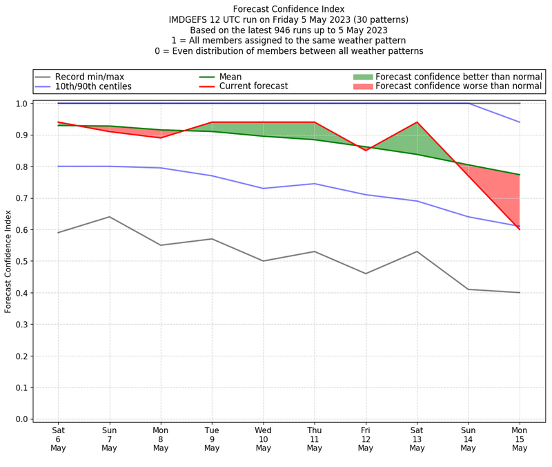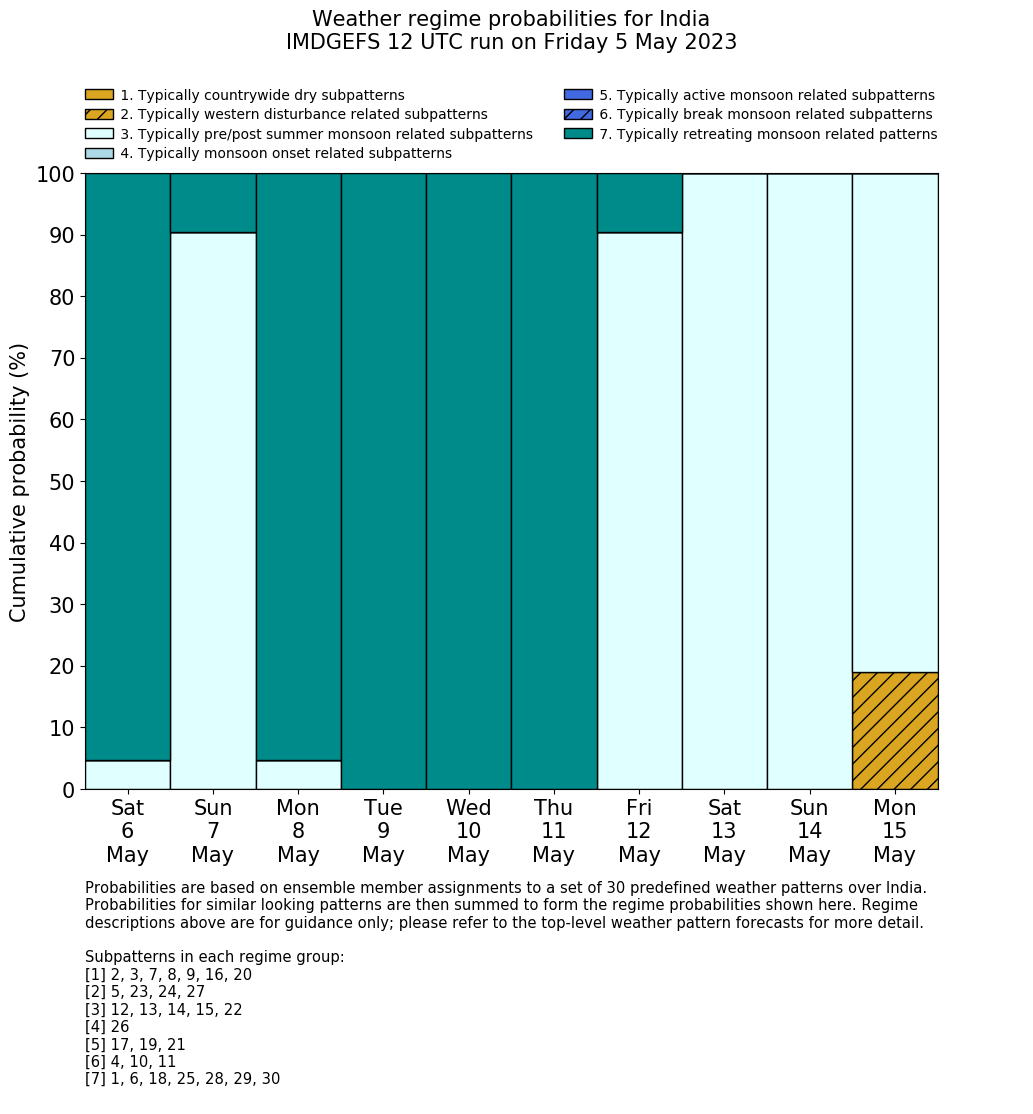 | Weather patterns typically associated with pre-monsoon tendencies over India are most likely Weather patterns 12, 13, 14, 15 and 22 (pre-monsoon) | |