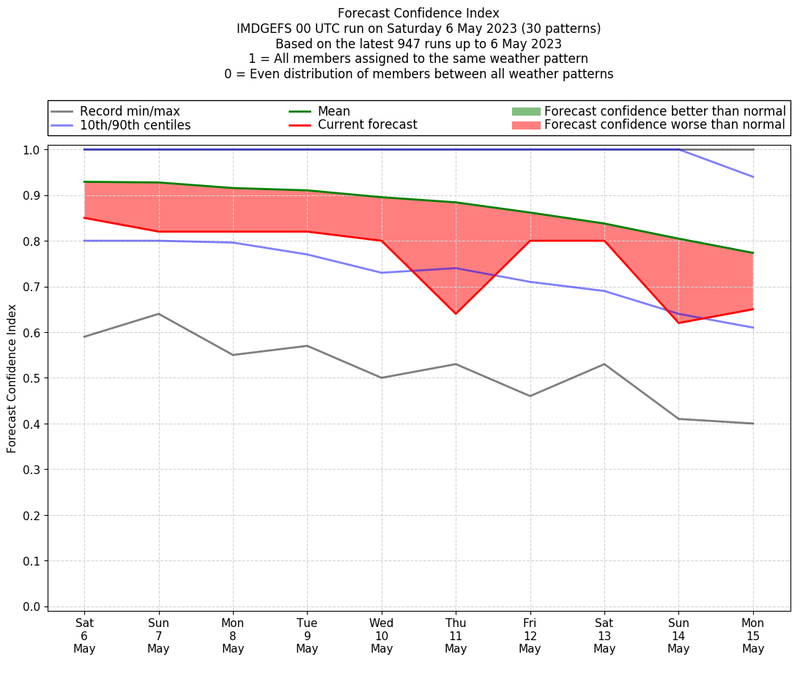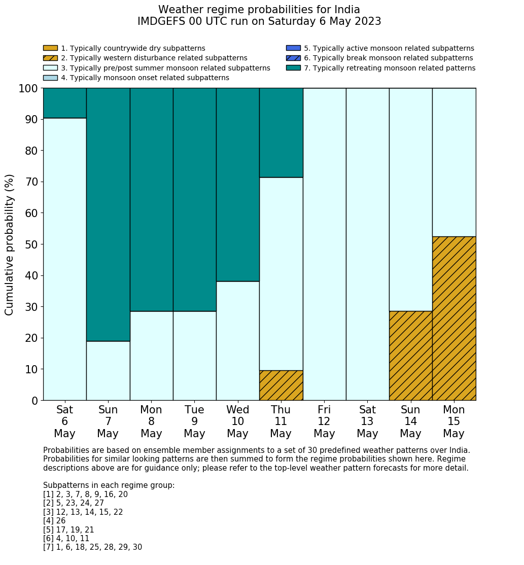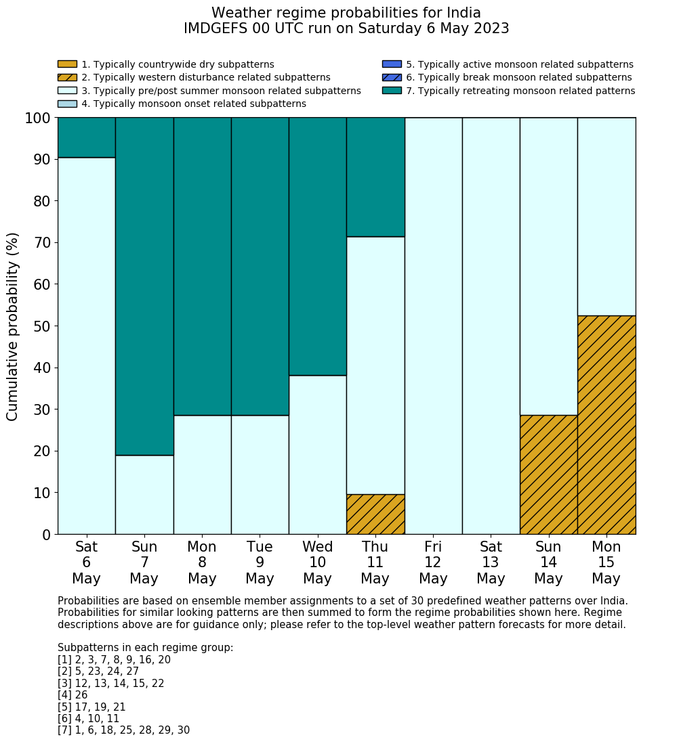 | Weather patterns typically associated with pre-monsoon tendencies over India are most likely Weather patterns 12, 13, 14, 15 and 22 (pre-monsoon) | |