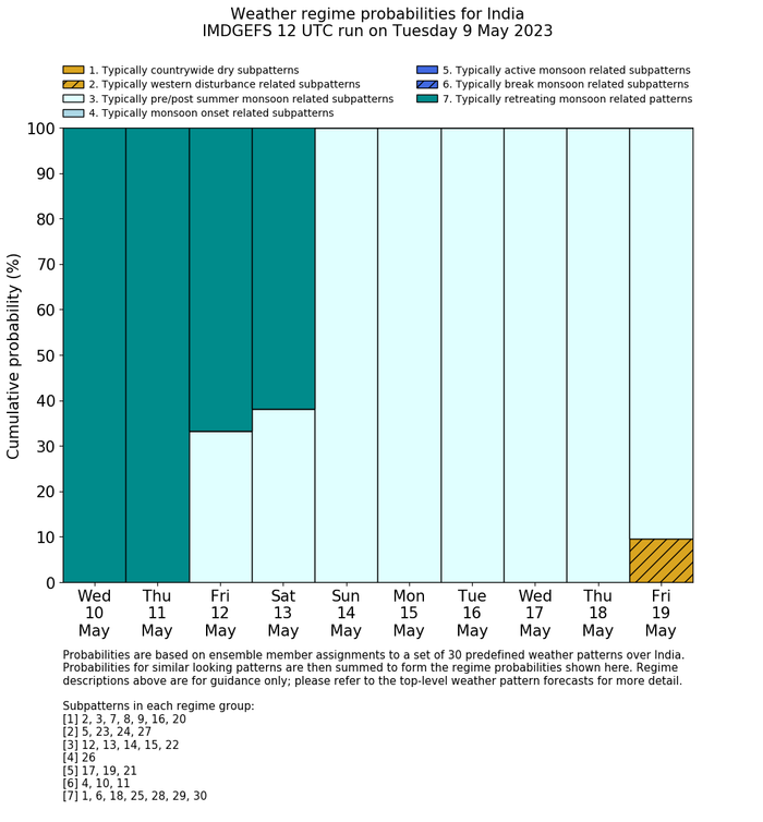 | Weather patterns typically associated with pre-monsoon tendencies over India are most likely Weather patterns 12, 13, 14, 15 and 22 (pre-monsoon) | |