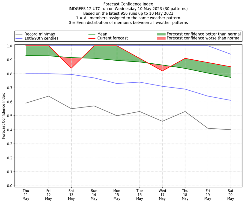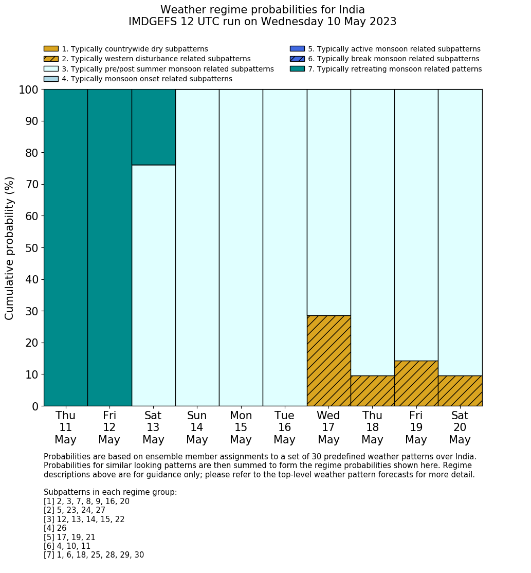 | Weather patterns typically associated with pre-monsoon tendencies over India are most likely Weather patterns 12, 13, 14, 15 and 22 (pre-monsoon) | |