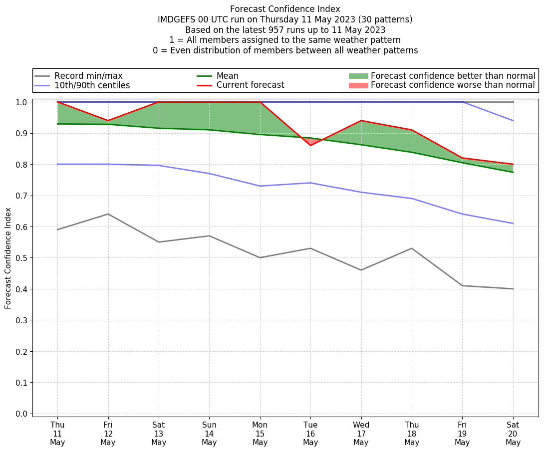 | Latest model run (11/00 UTC) | 100% | 95% | 100% | 100% | 100% | 81% | 95% | 90% | 71% | 57% |
