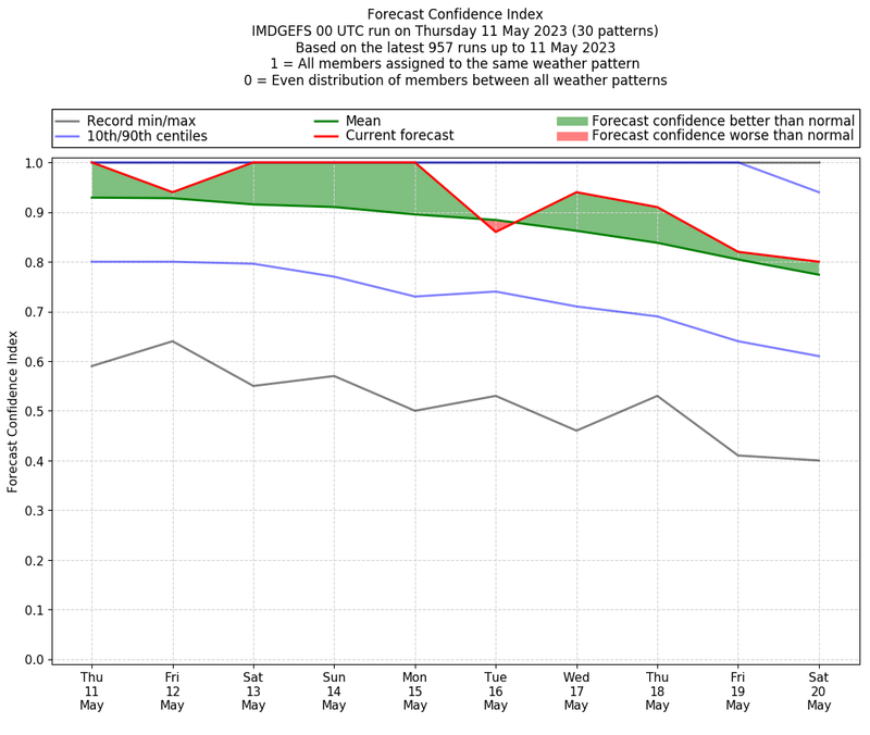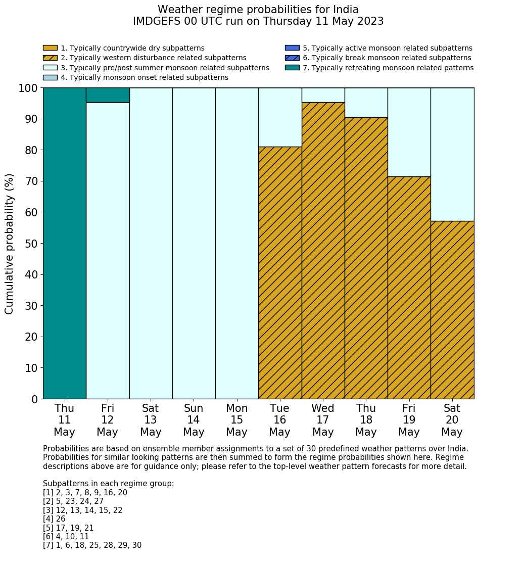 | Weather patterns typically associated with pre-monsoon tendencies over India are most likely Weather patterns 12, 13, 14, 15 and 22 (pre-monsoon) | |