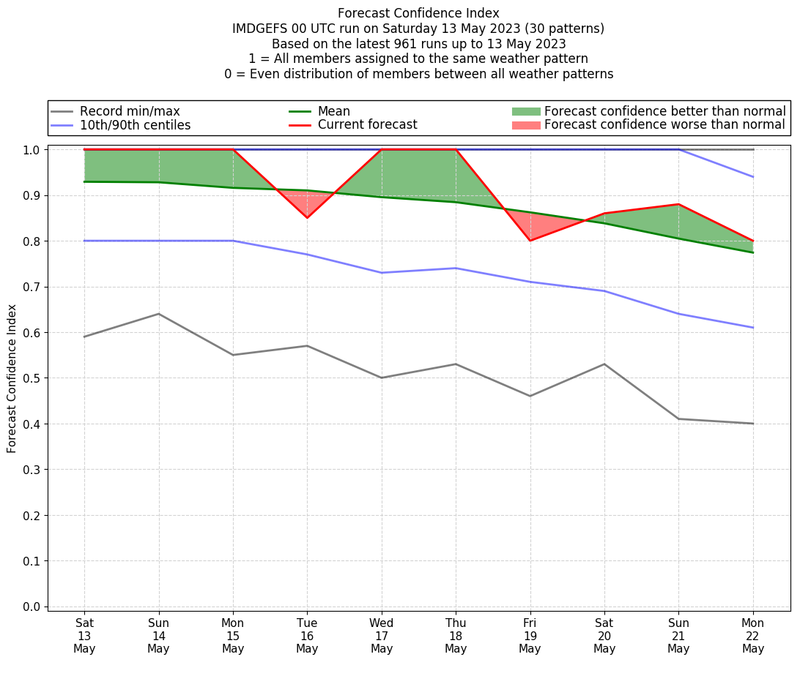 | Latest model run (13/00 UTC) | 100% | 100% | 100% | 86% | 100% | 100% | 62% | 81% | 86% | 81% |