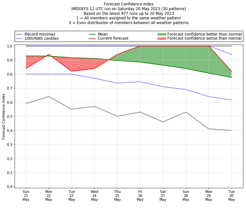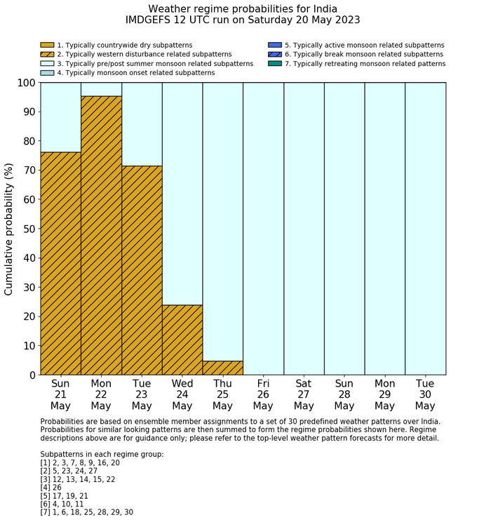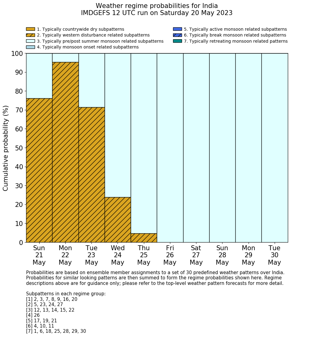 | Weather patterns typically associated with pre-monsoon tendencies over India are most likely Weather patterns 12, 13, 14, 15 and 22 (pre-monsoon) | |