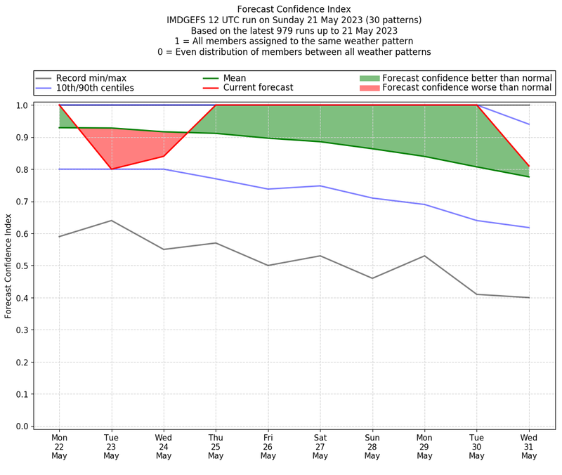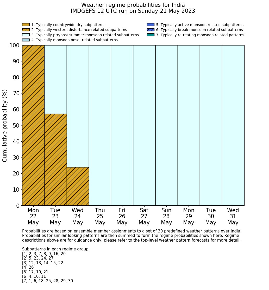 | Weather patterns typically associated with pre-monsoon tendencies over India are most likely Weather patterns 12, 13, 14, 15 and 22 (pre-monsoon) | |