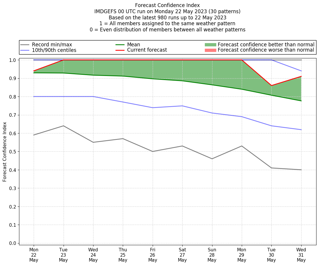 | Latest model run (22/00 UTC) | 95% | 100% | 100% | 100% | 100% | 100% | 100% | 100% | 100% | 100% |