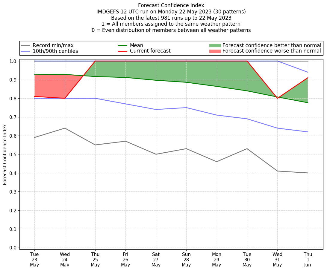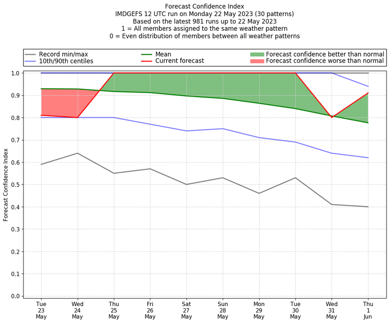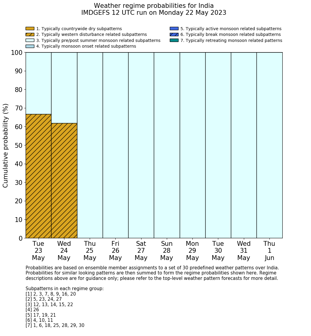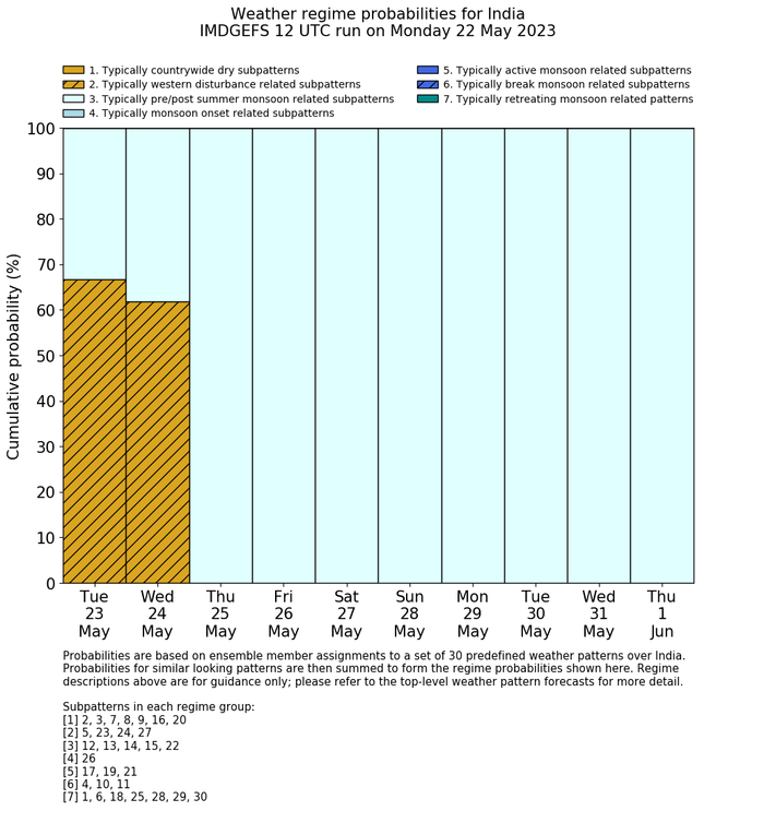 | Weather patterns typically associated with pre-monsoon tendencies over India are most likely Weather patterns 12, 13, 14, 15 and 22 (pre-monsoon) | |