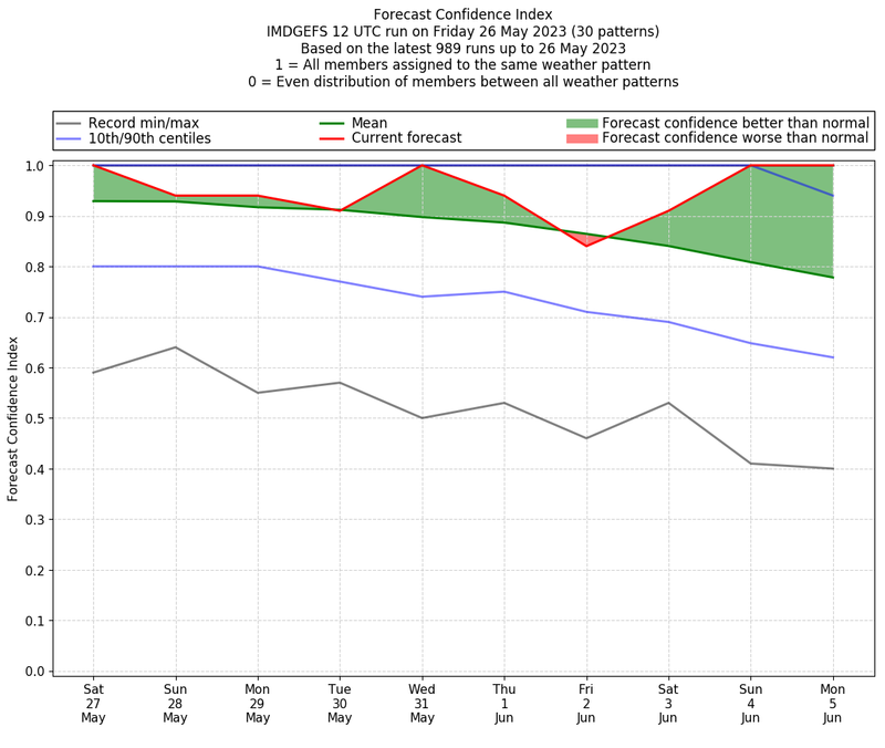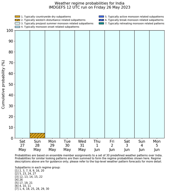 | Weather patterns typically associated with pre-monsoon tendencies over India are most likely Weather patterns 12, 13, 14, 15 and 22 (pre-monsoon) | |