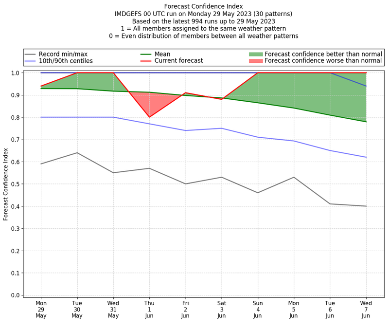 | Weather patterns typically associated with pre-monsoon tendencies over India are most likely Weather patterns 12, 13, 14, 15 and 22 (pre-monsoon) | |