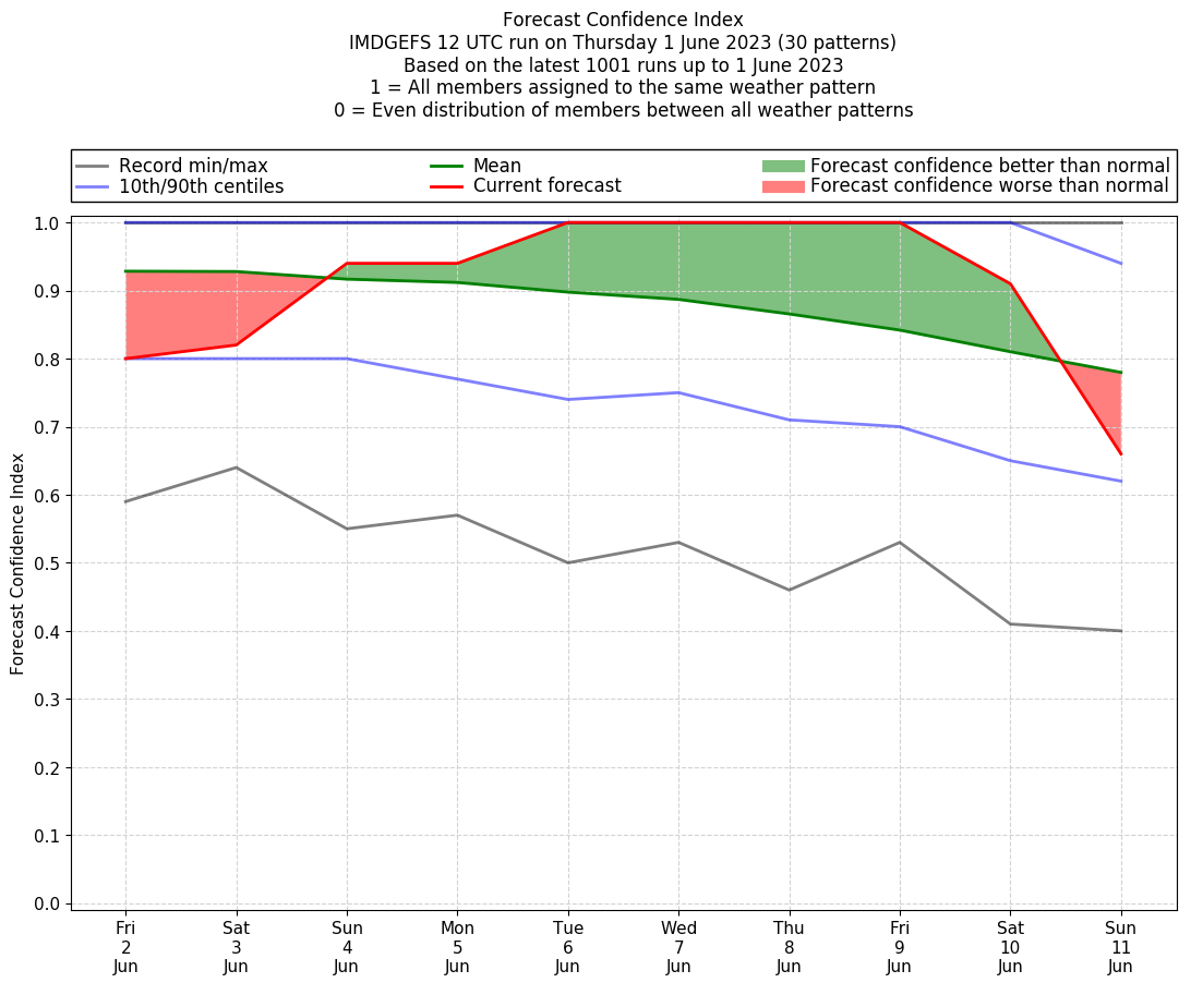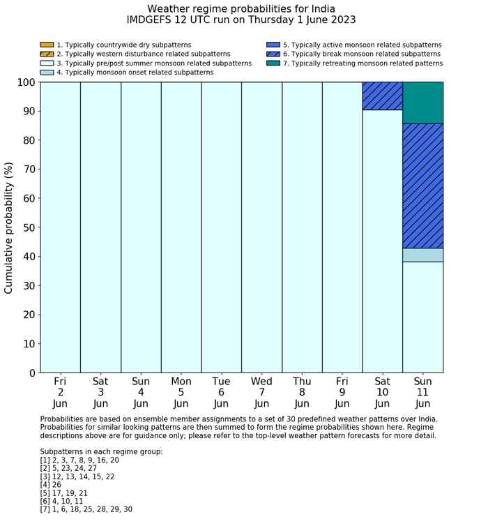 | Weather patterns typically associated with pre-monsoon tendencies over India are most likely Weather patterns 12, 13, 14, 15 and 22 (pre-monsoon) | |