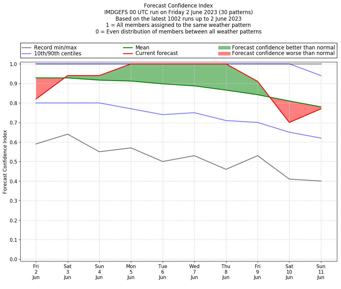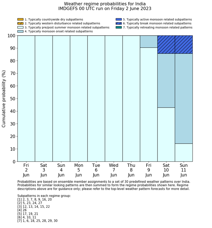 | Weather patterns typically associated with pre-monsoon tendencies over India are most likely Weather patterns 12, 13, 14, 15 and 22 (pre-monsoon) | |