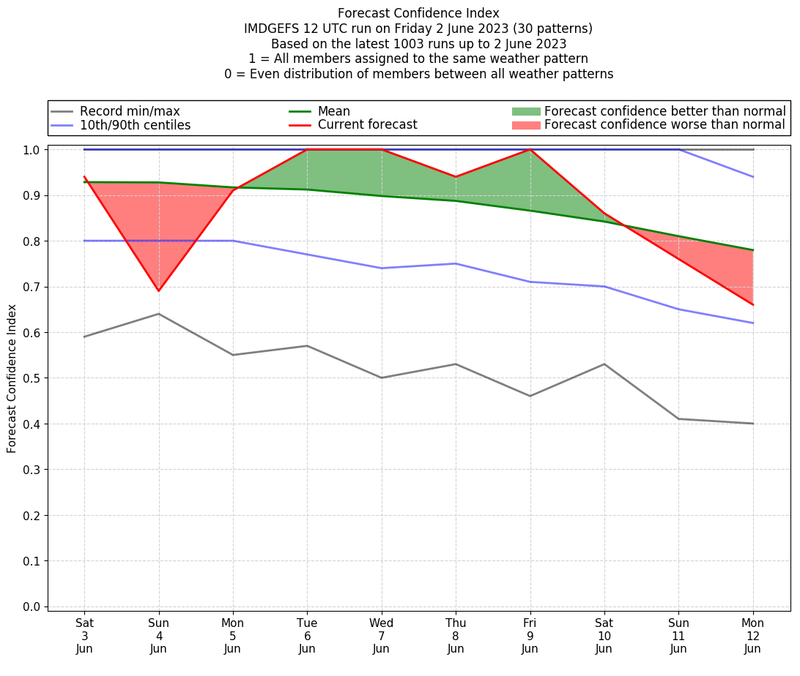| Weather patterns typically associated with break monsoon tendencies over India are most likely Weather patterns 4, 10 and 11 (break) | |