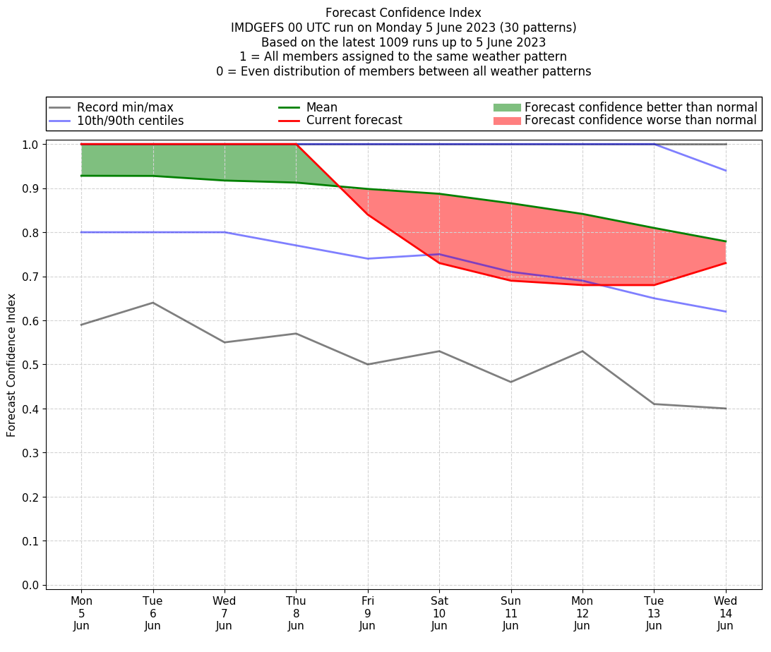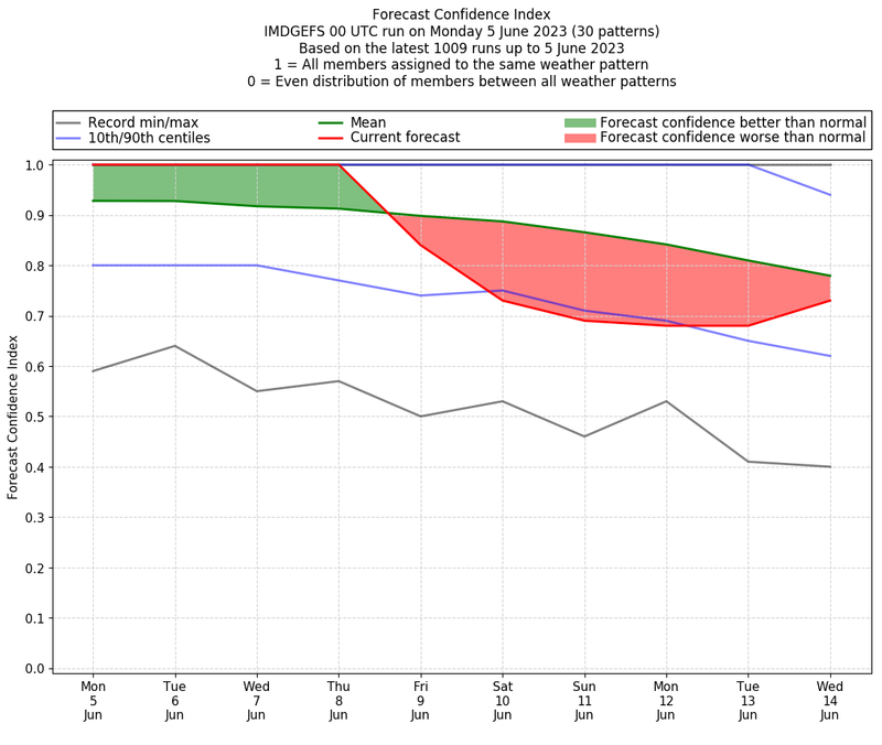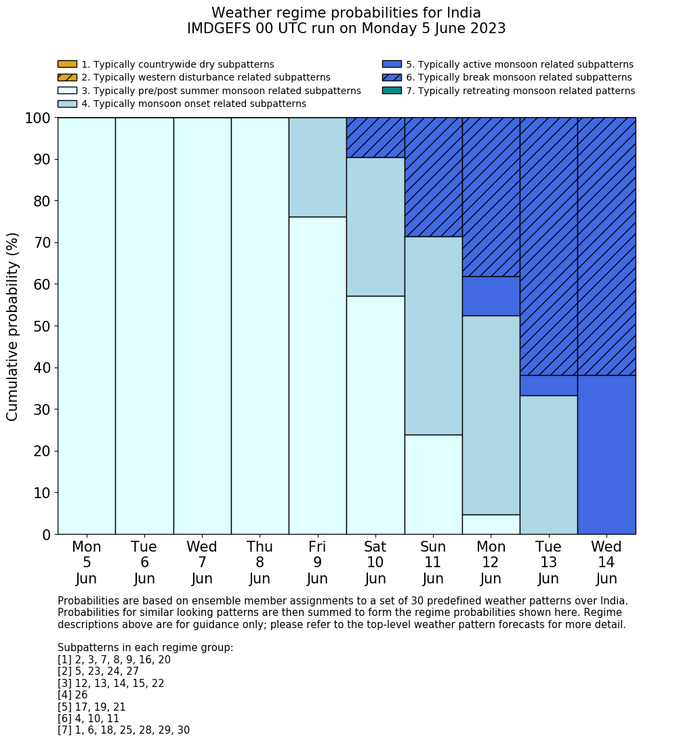 | Weather patterns typically associated with pre-monsoon tendencies over India are most likely Weather patterns 12, 13, 14, 15 and 22 (pre-monsoon) | |