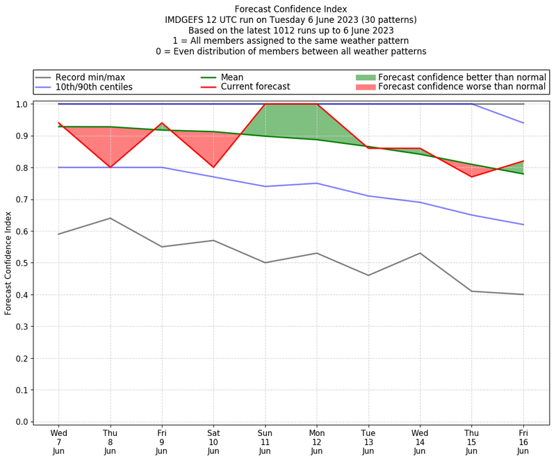 | Weather patterns typically associated with pre-monsoon tendencies over India are most likely Weather patterns 12, 13, 14, 15 and 22 (pre-monsoon) | |