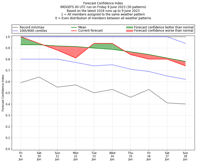 | Weather patterns typically associated with pre-monsoon tendencies over India are most likely Weather patterns 12, 13, 14, 15 and 22 (pre-monsoon) | |