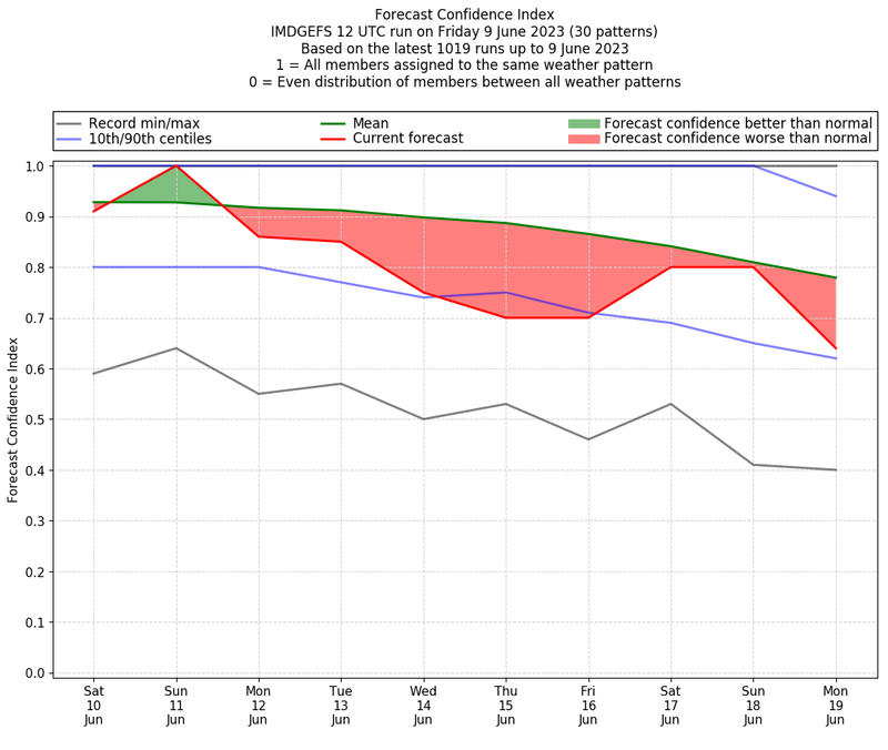 | Weather patterns typically associated with pre-monsoon tendencies over India are most likely Weather patterns 12, 13, 14, 15 and 22 (pre-monsoon) | |