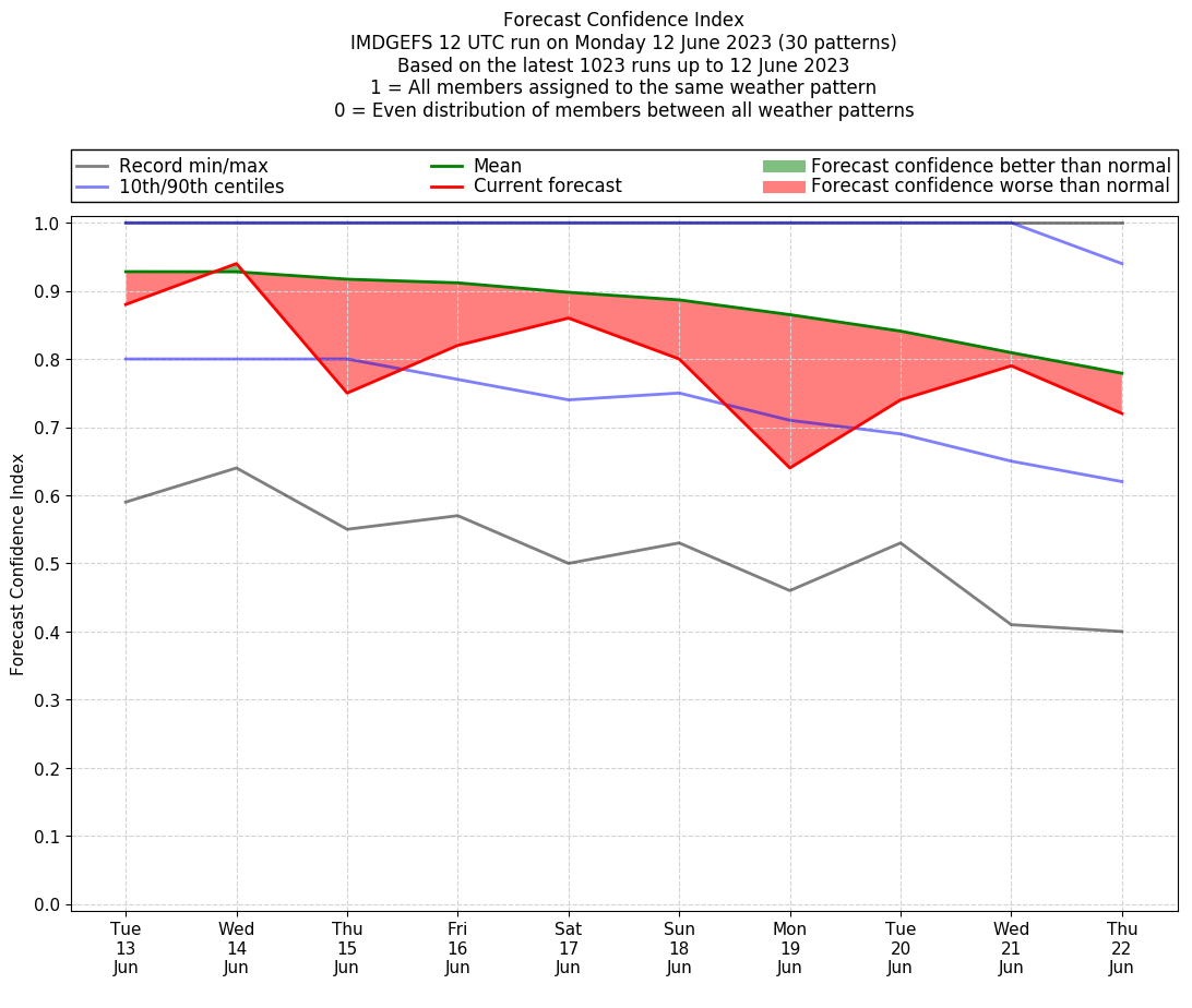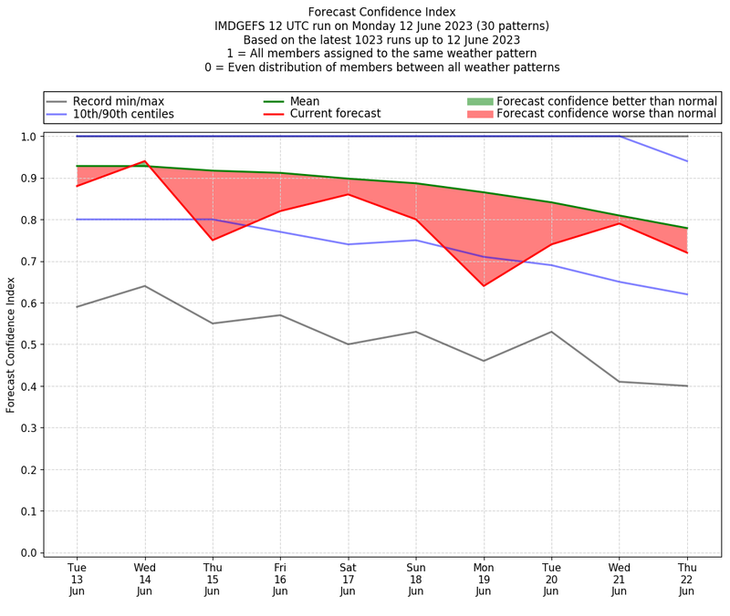 | Weather patterns typically associated with pre-monsoon tendencies over India are most likely Weather patterns 12, 13, 14, 15 and 22 (pre-monsoon) | |