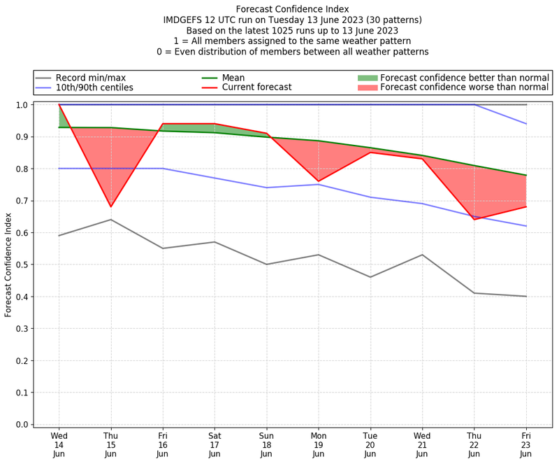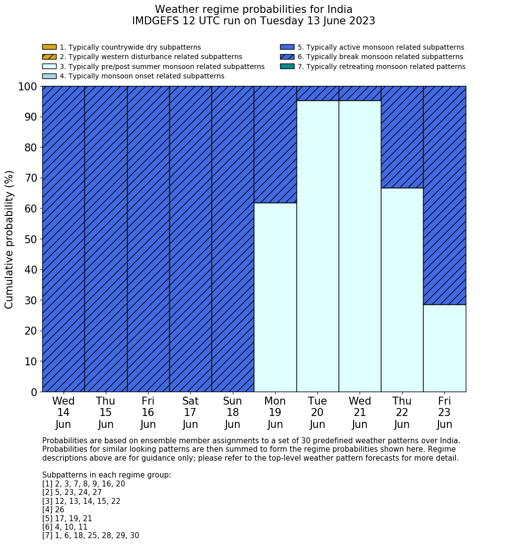 | Weather patterns typically associated with pre-monsoon tendencies over India are most likely Weather patterns 12, 13, 14, 15 and 22 (pre-monsoon) | |