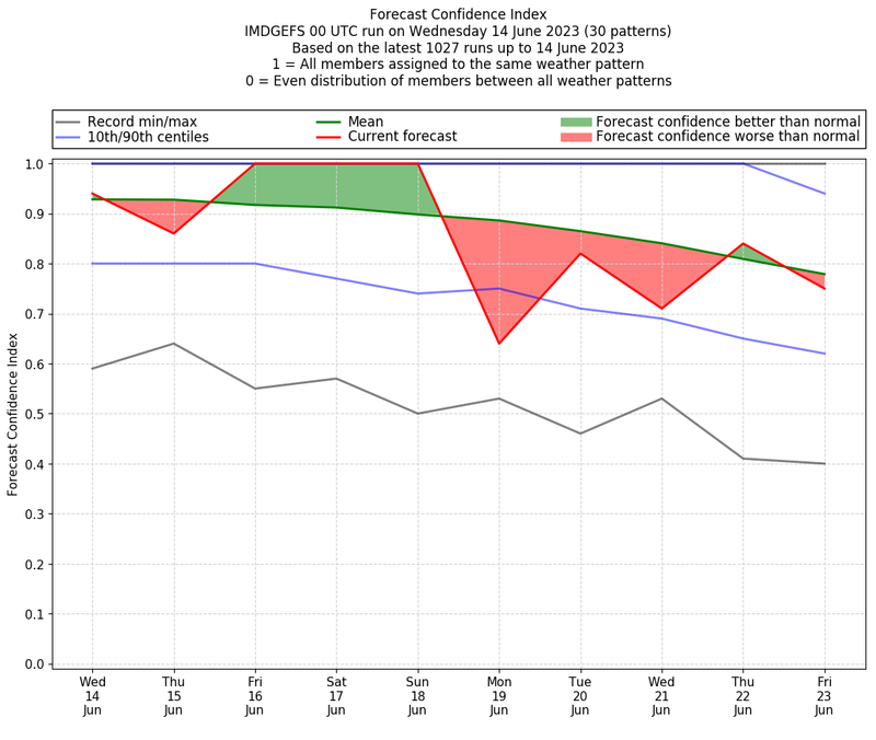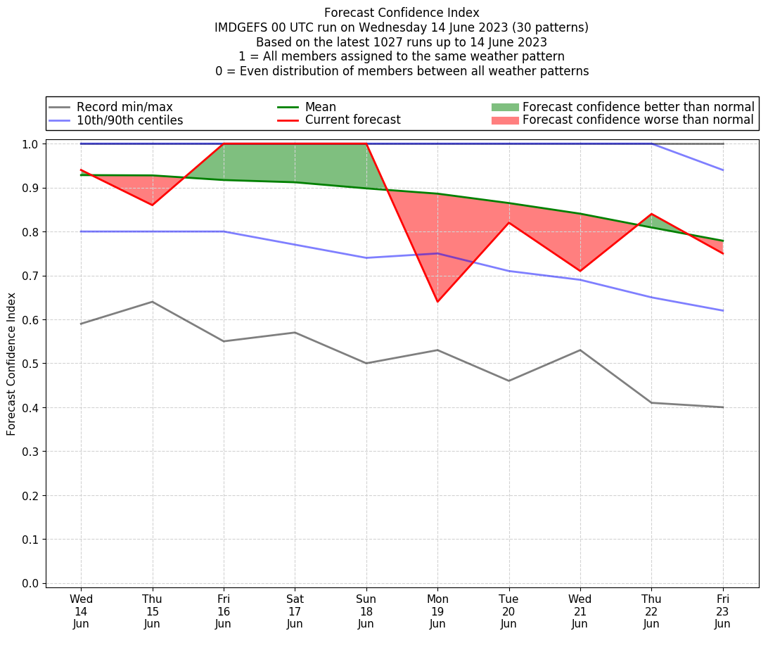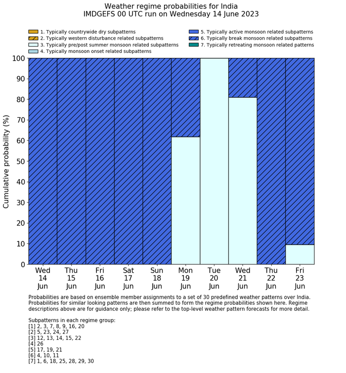 | Weather patterns typically associated with pre-monsoon tendencies over India are most likely Weather patterns 12, 13, 14, 15 and 22 (pre-monsoon) | |