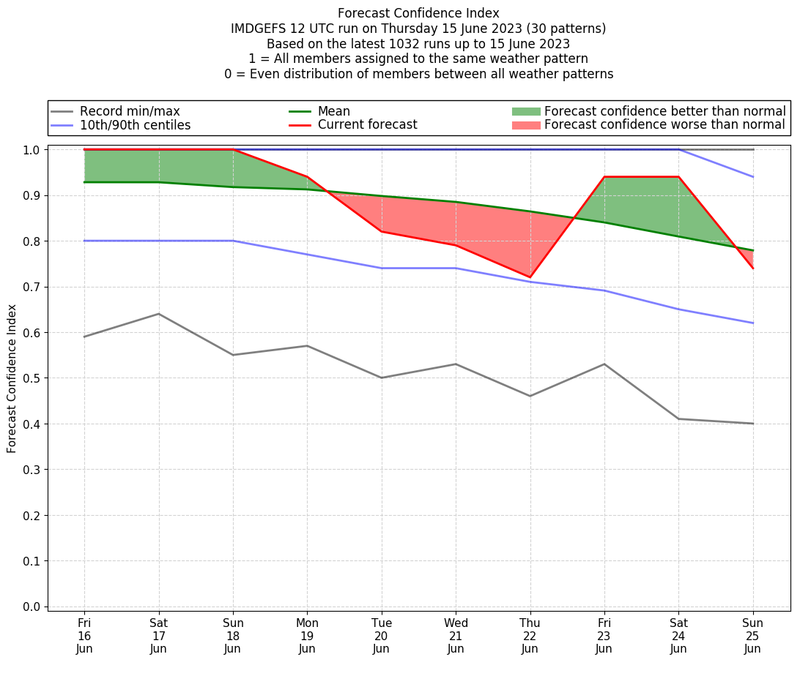 | Weather patterns typically associated with pre-monsoon tendencies over India are most likely Weather patterns 12, 13, 14, 15 and 22 (pre-monsoon) | |