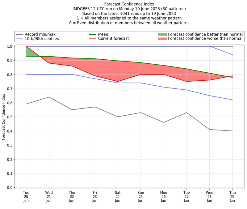 | Weather patterns typically associated with pre-monsoon tendencies over India are most likely Weather patterns 12, 13, 14, 15 and 22 (pre-monsoon) | |