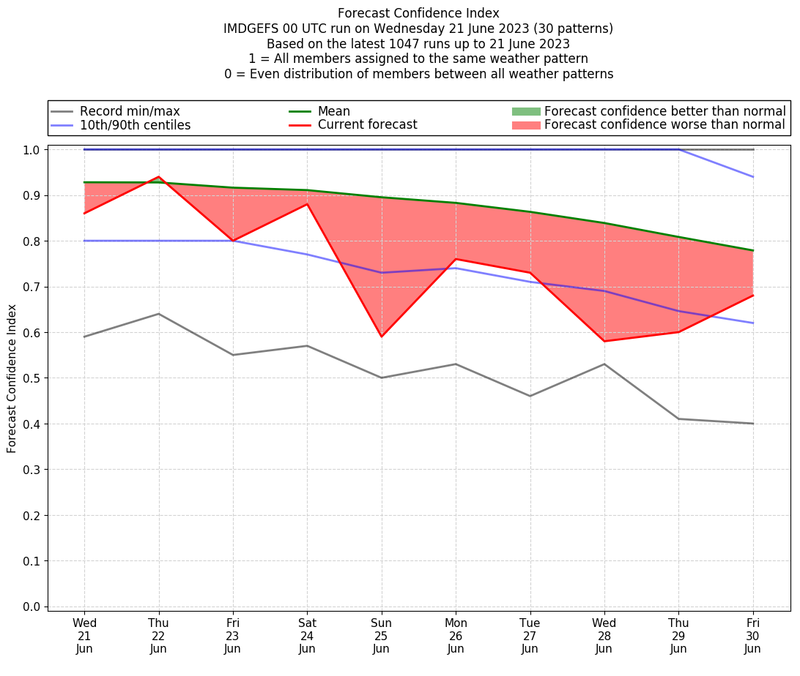 | Weather patterns typically associated with pre-monsoon tendencies over India are most likely Weather patterns 12, 13, 14, 15 and 22 (pre-monsoon) | |