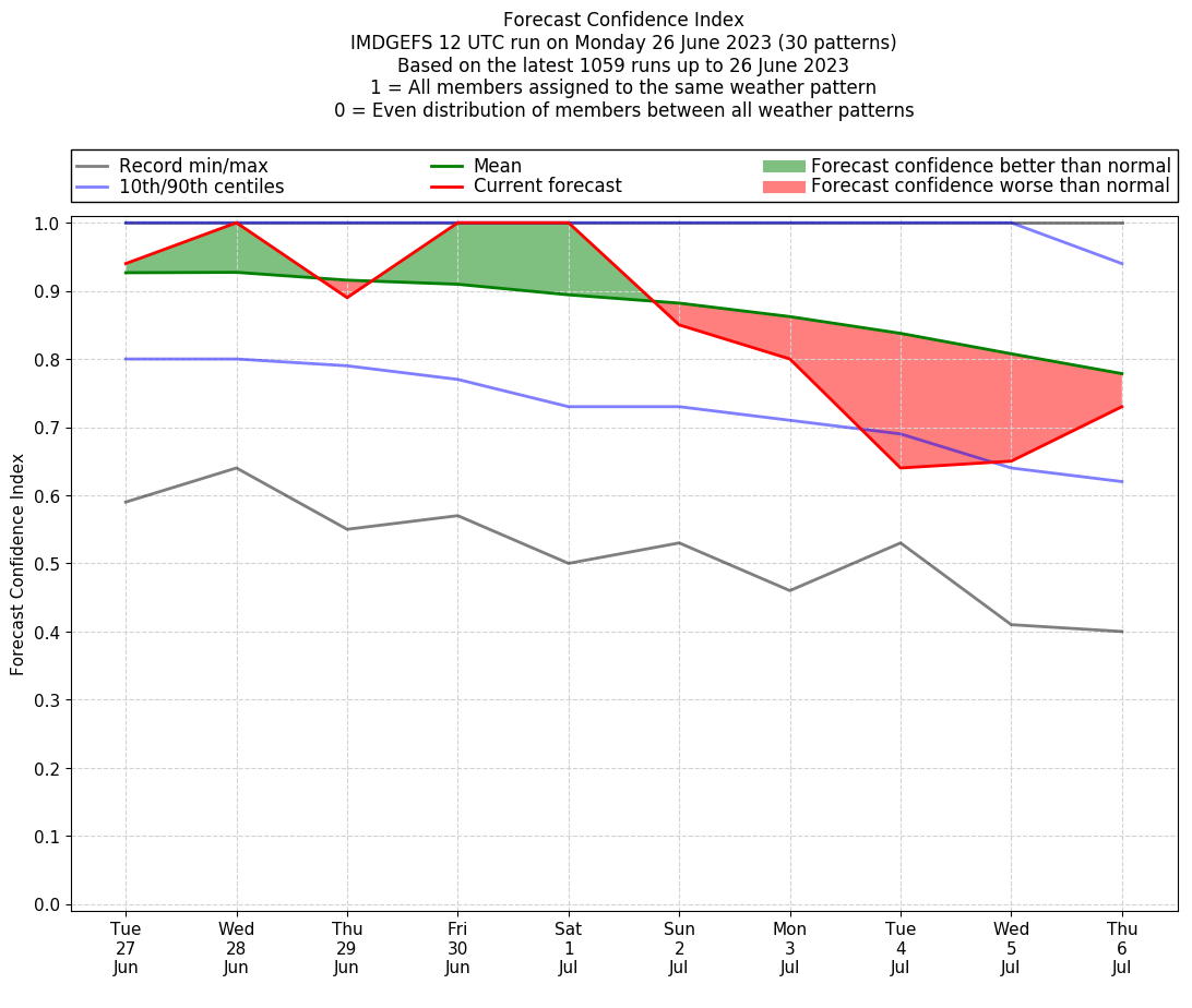 | Latest model run (26/12 UTC) | 100% | 100% | 90% | 100% | 100% | 95% | 86% | 52% | 76% | 67% |