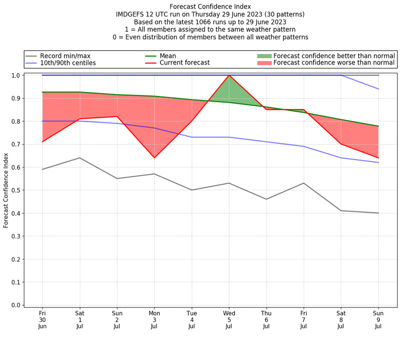 | Weather patterns typically associated with pre-monsoon tendencies over India are most likely Weather patterns 12, 13, 14, 15 and 22 (pre-monsoon) | |