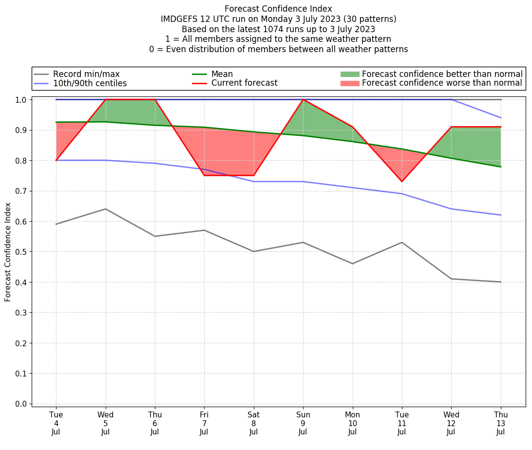 | Weather patterns typically associated with pre-monsoon tendencies over India are most likely Weather patterns 12, 13, 14, 15 and 22 (pre-monsoon) | |