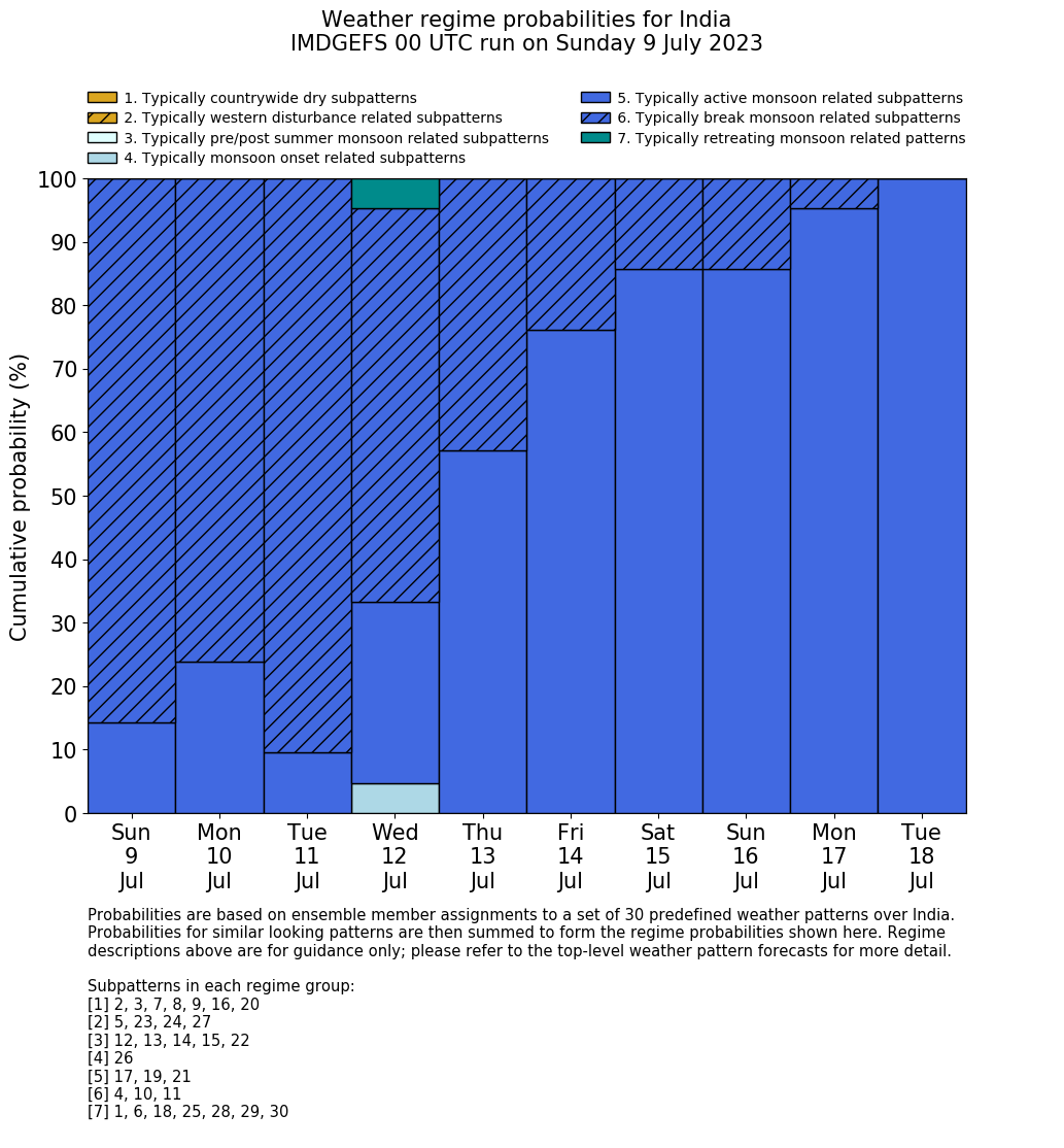 | Weather patterns typically associated with break monsoon tendencies over India are most likely Weather patterns 4, 10 and 11 (break) | |