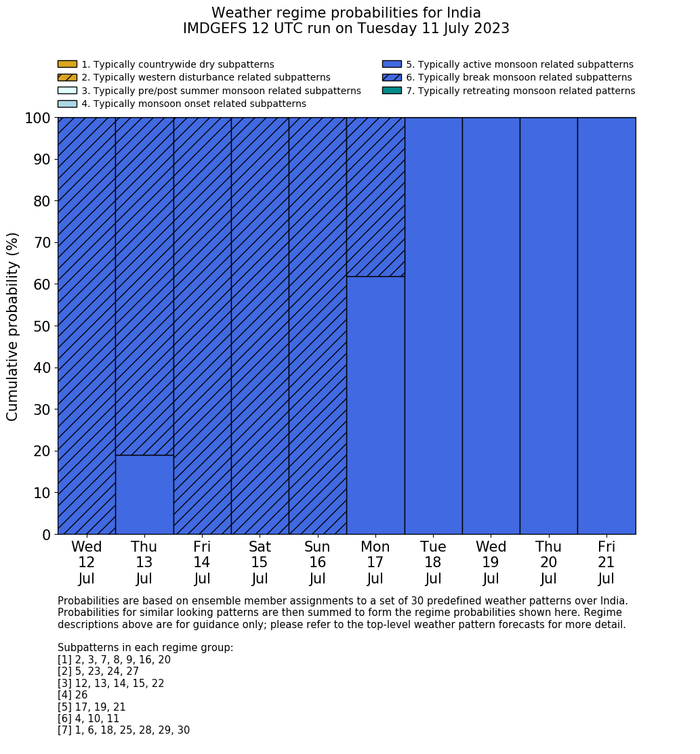 | Weather patterns typically associated with active monsoon tendencies over India are most likely Weather patterns 17, 19 and 21 (active) |