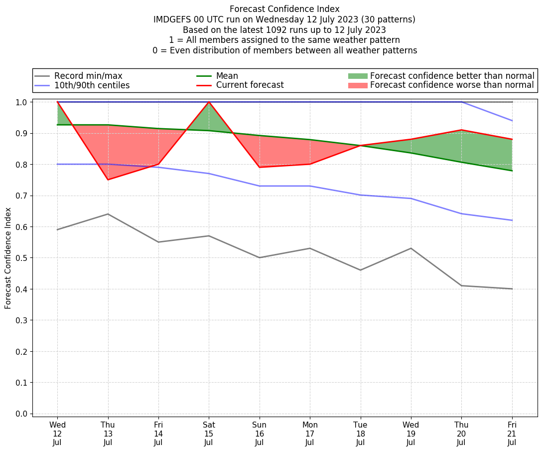 | Weather patterns typically associated with pre-monsoon tendencies over India are most likely Weather patterns 12, 13, 14, 15 and 22 (pre-monsoon) | |