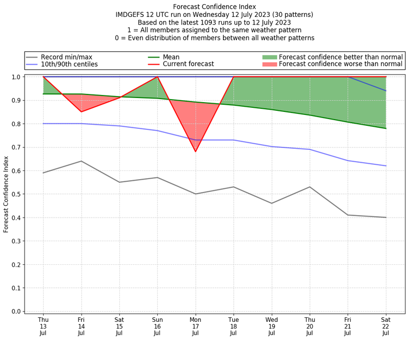 | Weather patterns typically associated with pre-monsoon tendencies over India are most likely Weather patterns 12, 13, 14, 15 and 22 (pre-monsoon) | |