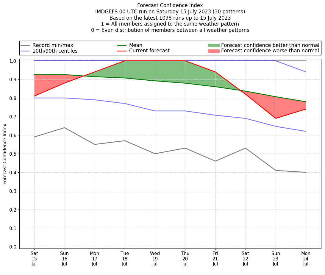 | Weather patterns typically associated with contrywide dry period tendencies over India are most likely Weather patterns 2, 3, 7, 8, 9, 16 and 20 (countrywide winter dry period) | |