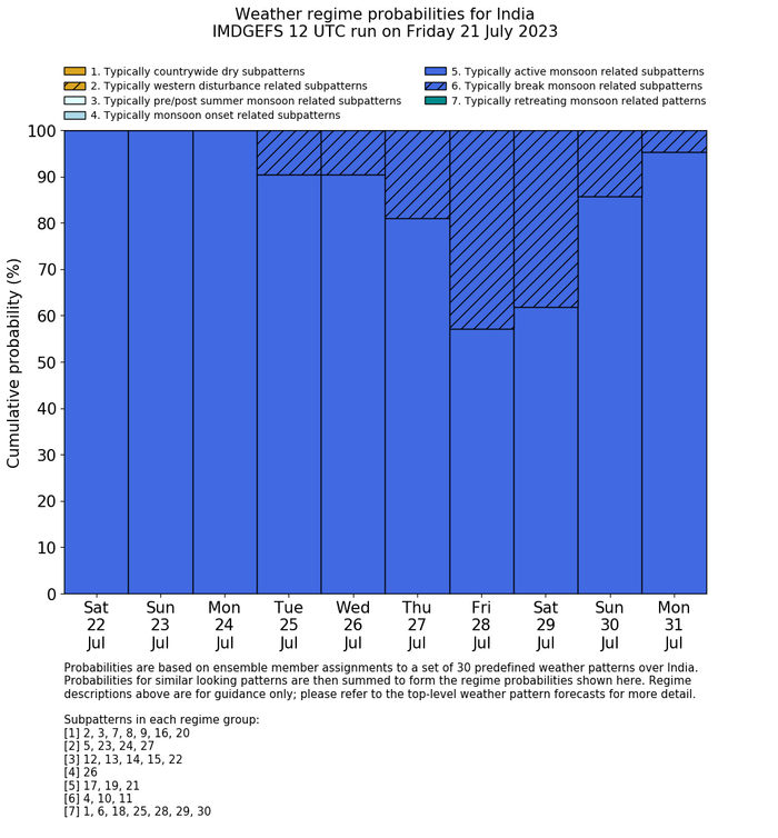 | Weather patterns typically associated with active monsoon tendencies over India are most likely Weather patterns 17, 19 and 21 (active) |